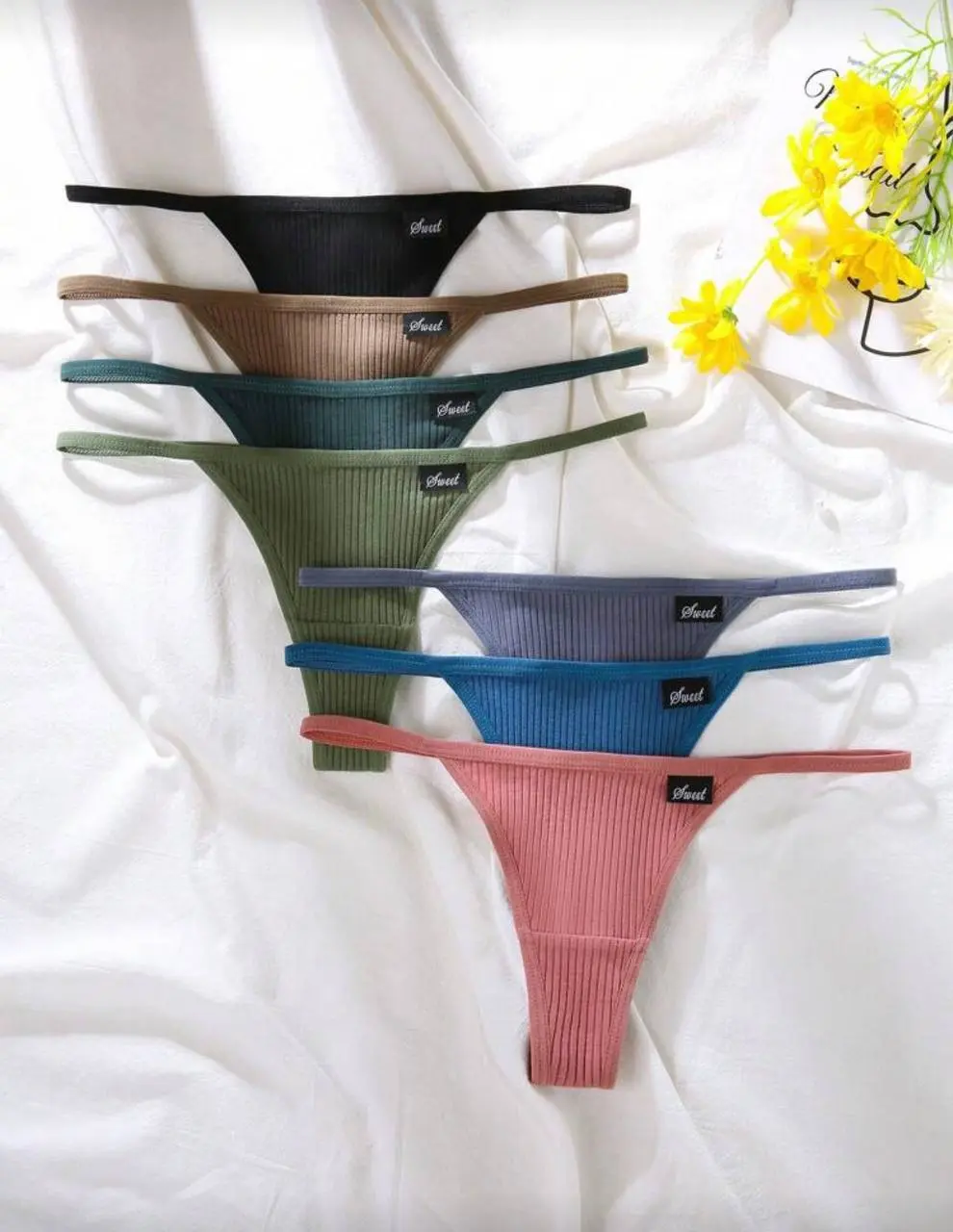 - Elevate your lingerie essentials with the Shien 7pcs Women’s Seamless Letter Print G-String Panties Set, a perfect combination of comfort, style, and modern design. This set is crafted for women who value both practicality and fashion in their everyday underwear. With seven unique pieces included, you’ll enjoy variety and versatility, ensuring you always have the right pair for every mood and occasion.